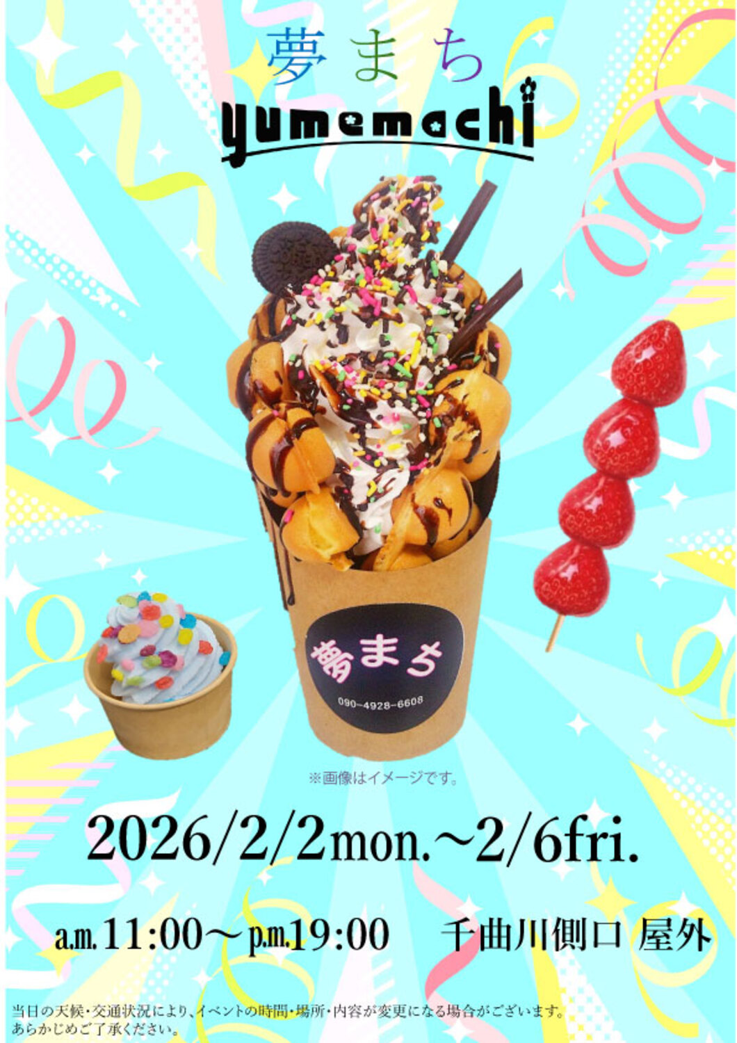 ※当日の天候・交通事情により、イベントの時間・場所・内容が変更になる場合がございます。 あらかじめご了承下さい。