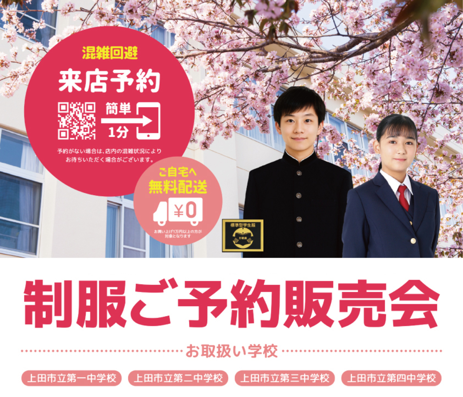 上田市立第一・二・三・四中学校の制服採寸会を開催。