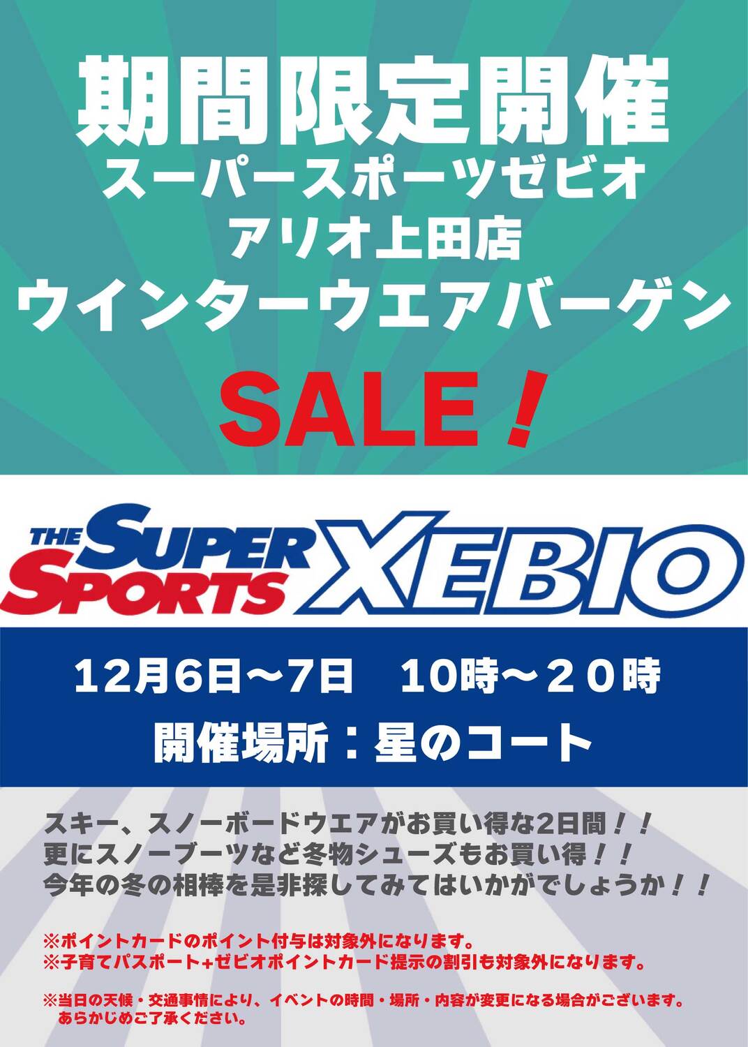 期間限定開催 スーパースポーツゼビオ アリオ上田店 ウィンターウェアバーゲンSALE!