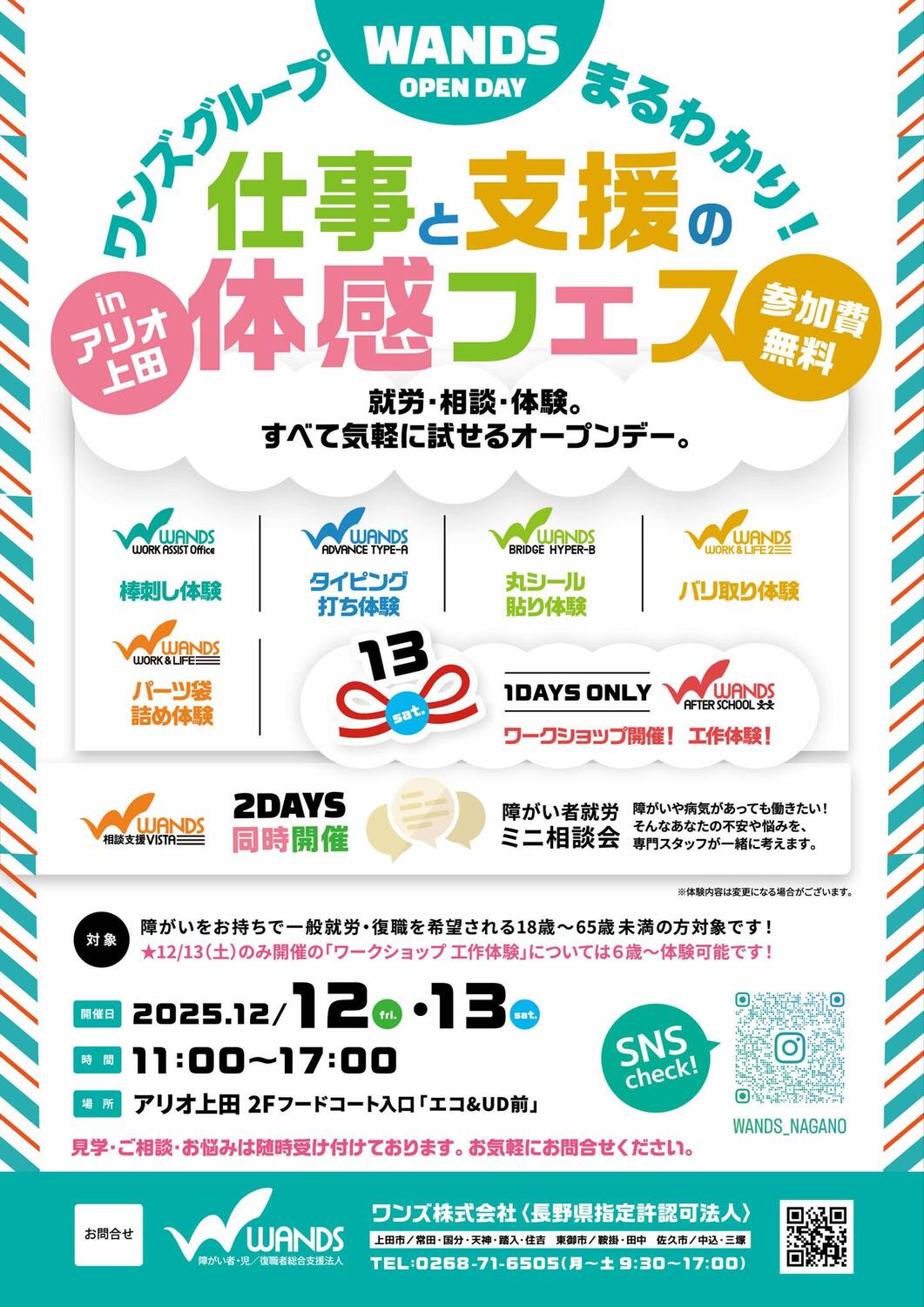 ※12/13(土)のみ開催の「ワークショップ 工作体験」については6歳~体験可能です!