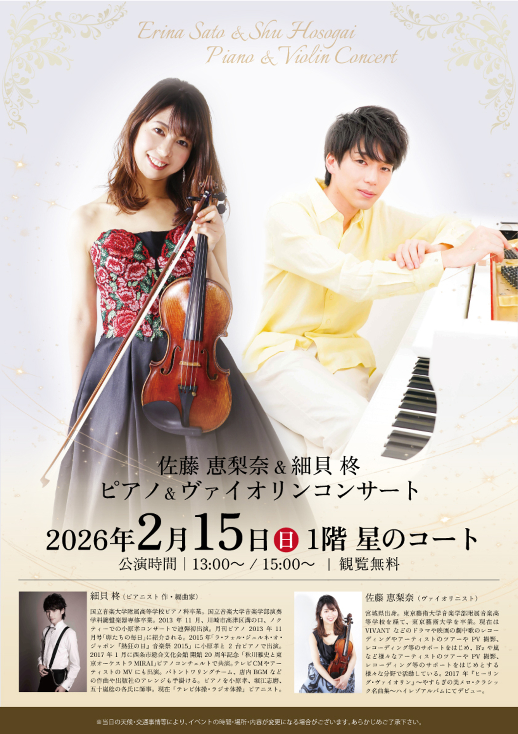佐藤恵梨奈と細貝 柊によるピアノ&ヴァイオリンコンサート