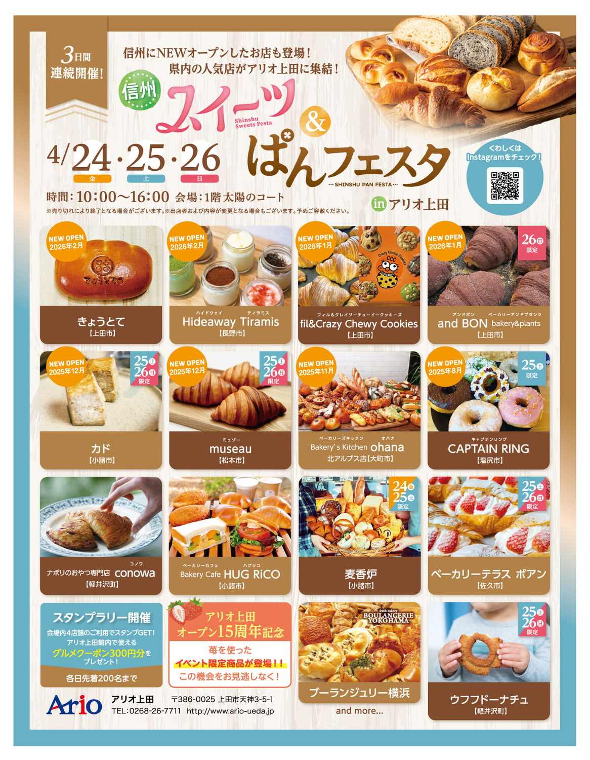 信州の美味しいスイーツとパンのお店がアリオ上田に大集合!