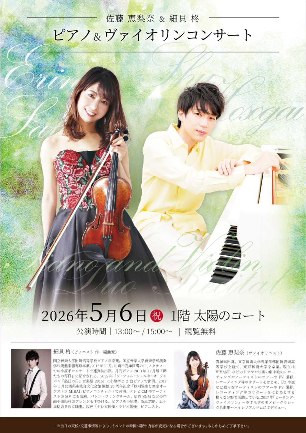 佐藤恵梨奈と細貝 柊によるピアノ&ヴァイオリンコンサート