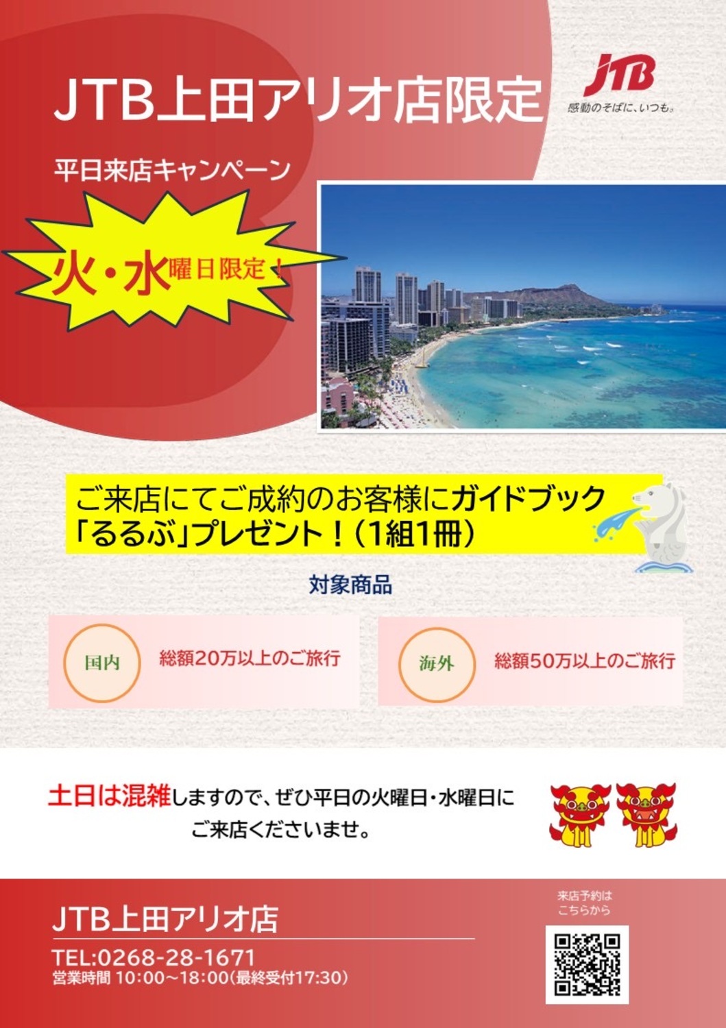 土日は混雑しますので是非平日の火、水曜日に