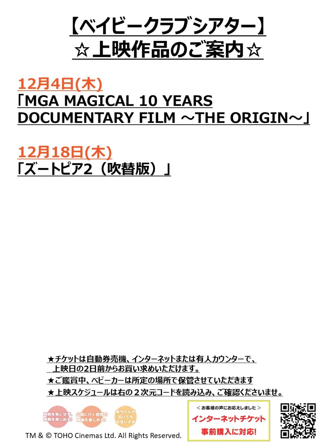 【ベイビークラブシアター】12月の上映作品が決定しました!