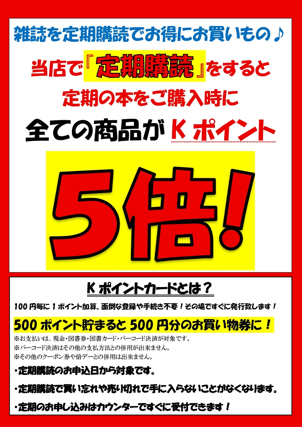 ※コミックや書籍は定期購読対象外です。詳しくはスタッフへお尋ねください。
