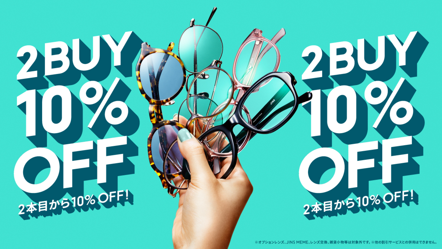 JINSでは、メガネやサングラスのまとめ買いで2本目から10%OFFになるキャンペーンを実施中です。(※)