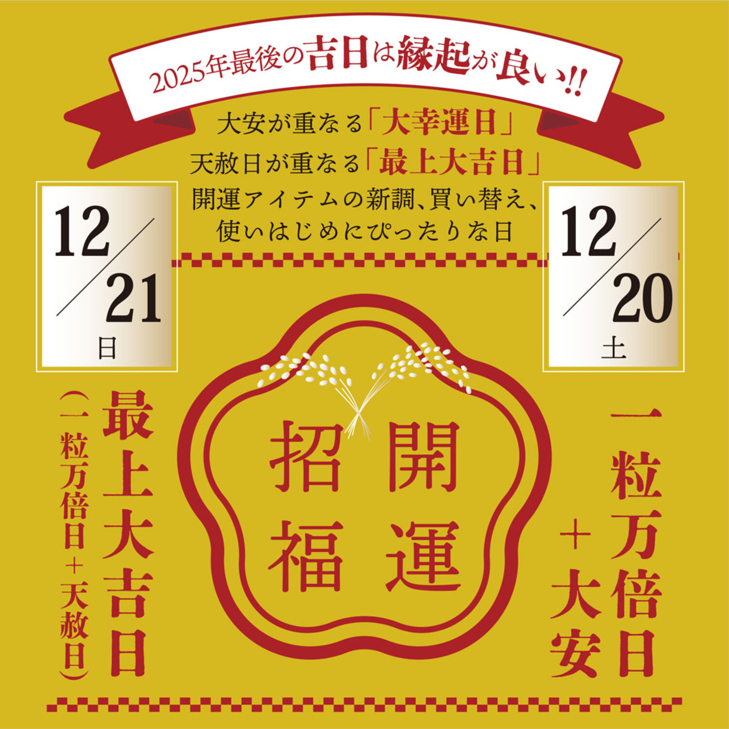 12/21は開運吉日、年に数回しか訪れない【最上大吉日】