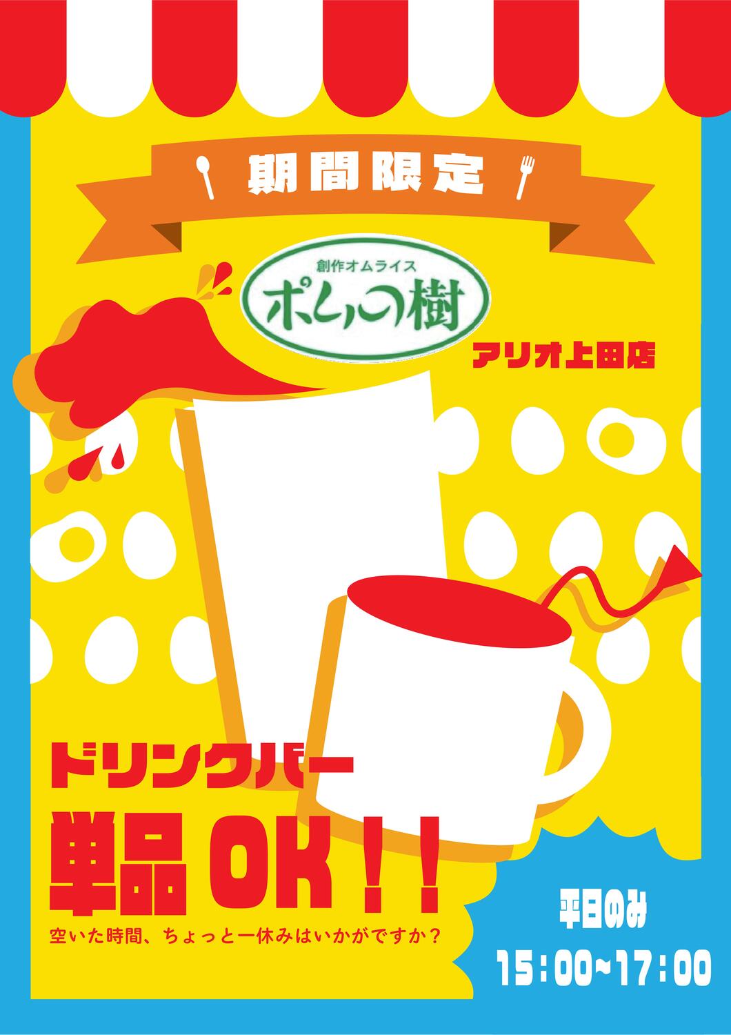 期間限定 平日15:00~17:00 ドリンクバー単品OK