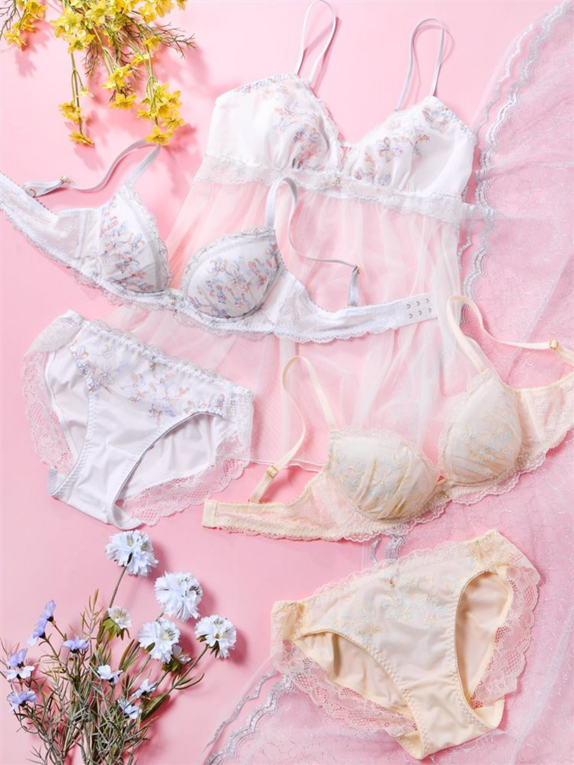 ・[運命のブラ]レースアップブーケブラ&ショーツセット